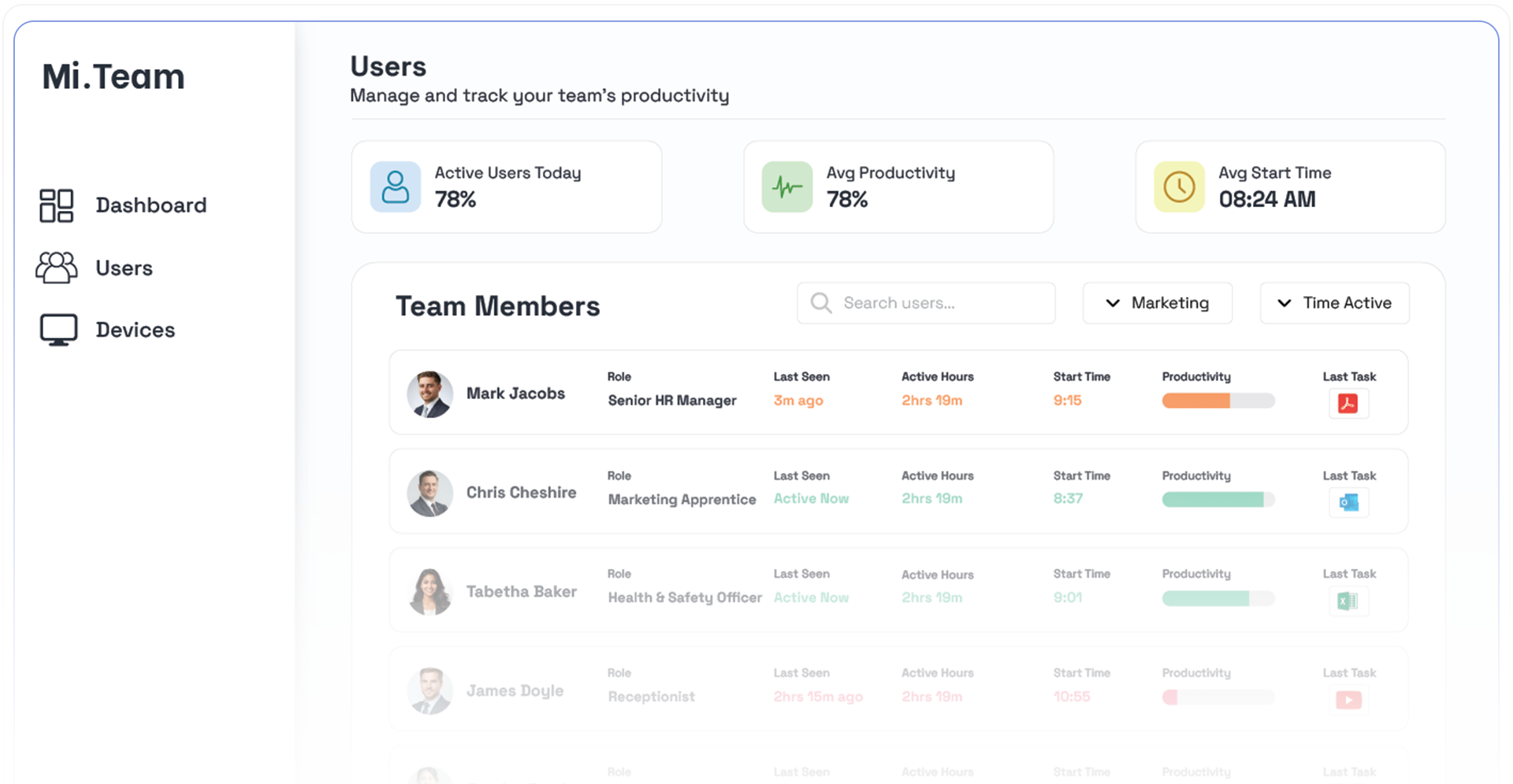 At Mi.Team, we believe that true productivity starts with clarity, trust, and empowerment. Our platform is designed to help businesses understand performance not to micromanage it.