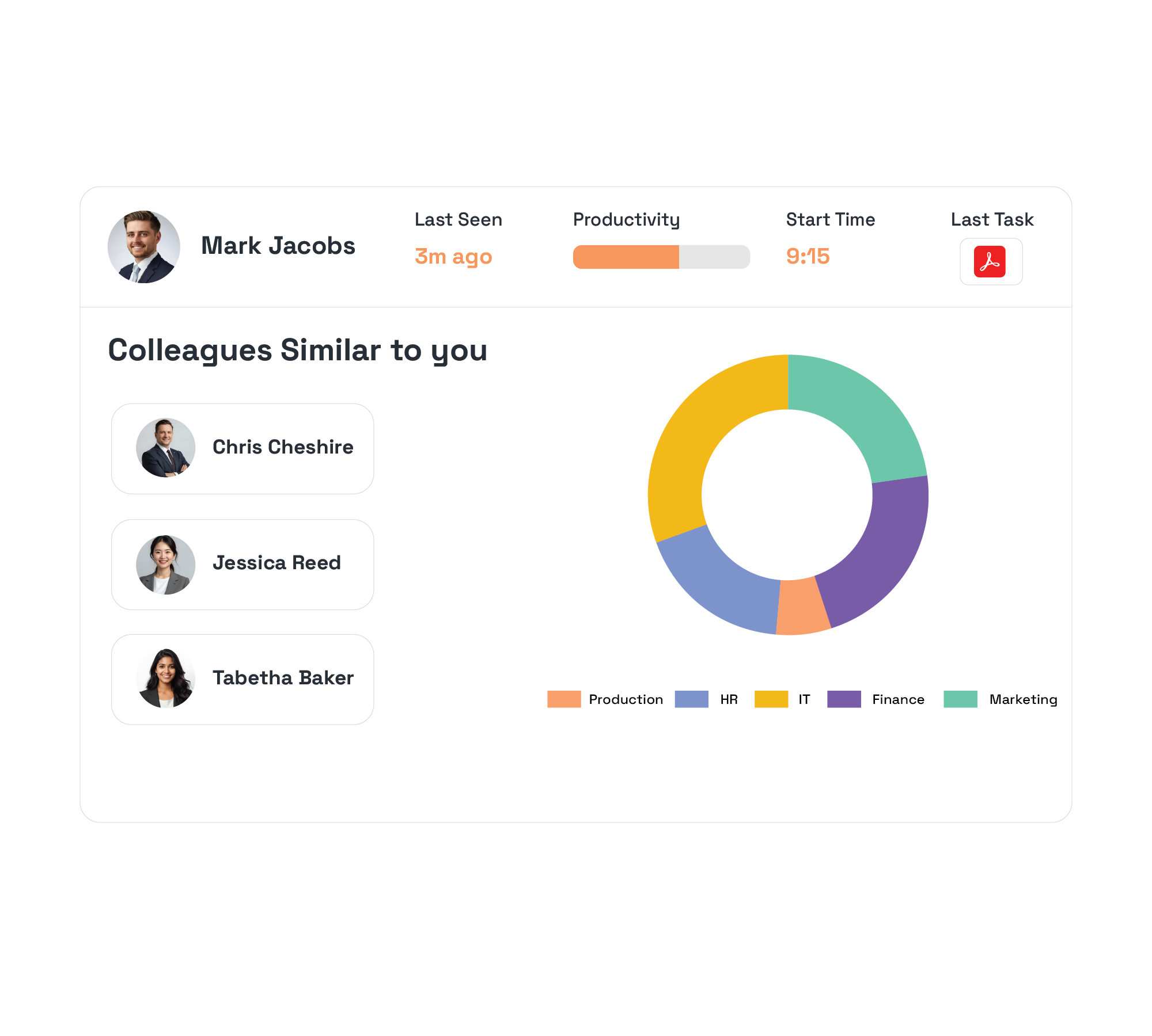 Our AI identifies colleagues with similar workflows, strengths, and productivity rhythms, helping you connect with the right people at the right time.